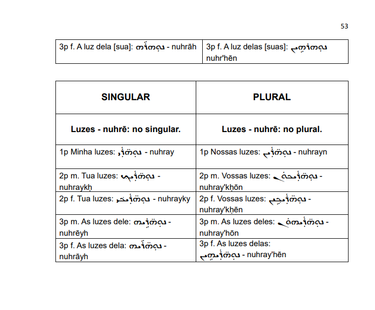 ܢܘܗܪܟܘܢ vossa luz: ܢܘܗܪܐ + ܟܘܢ [nuhra + kḥon] = nuhr'kḥon = [luz-vossa]